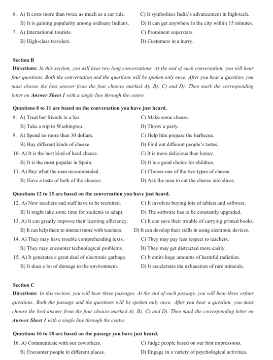 2022年6月大学英语四级考试真题及答案(第2套)