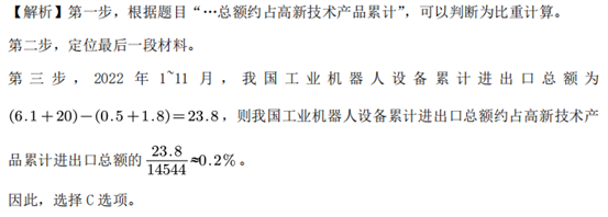 129.已知2022年1~11月我国高新术产品计进出口总额约为14544亿美元,则同期我国工业机器人设备累计进出口总额约占高新技术产品累计进出口总额的: