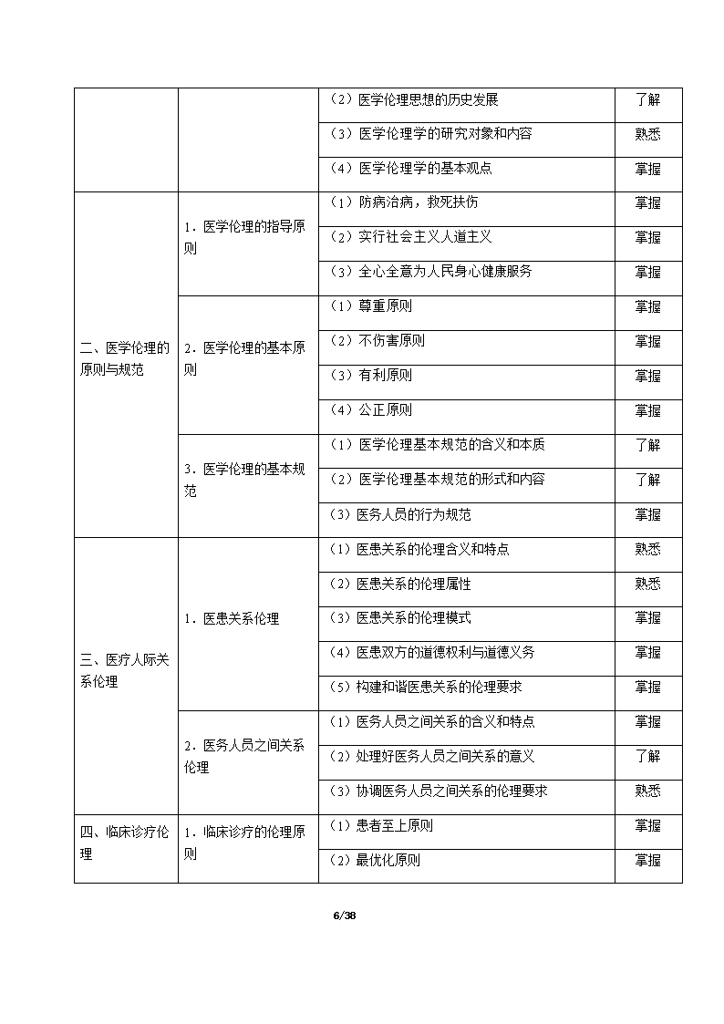 2018年中西医助理医师考试大纲《医学伦 理学》