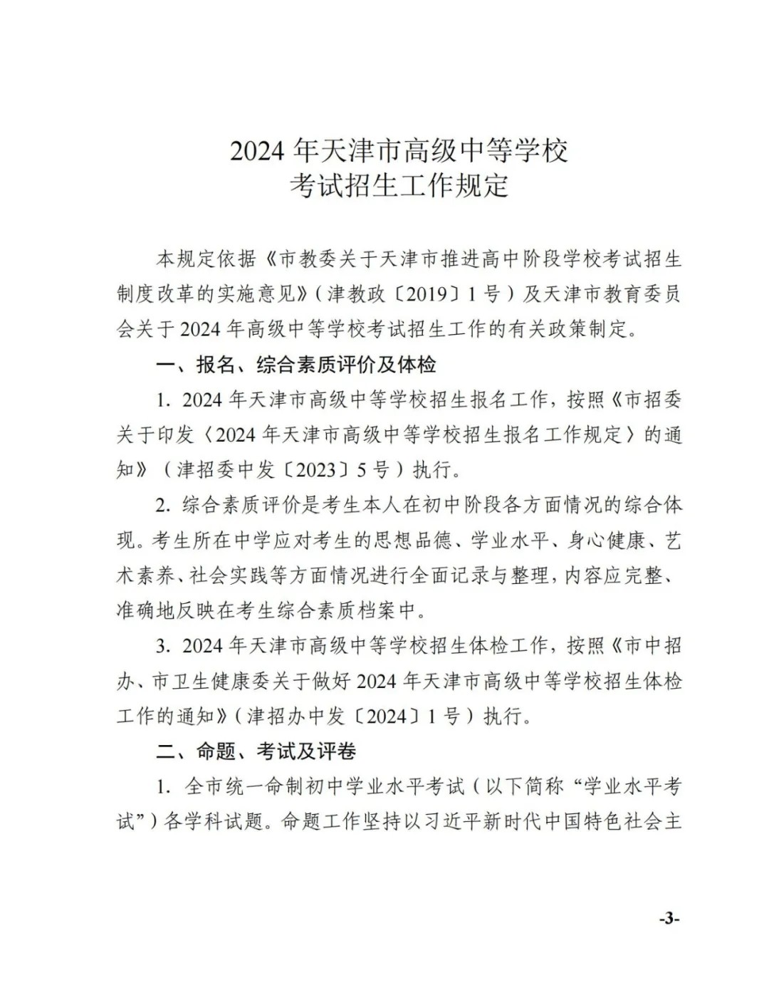 从天津市教育委员会得知,日前,《2024年天津市高级中等学校考试招生工作规定》印发,2024年天津中考时间是6月22日-6月24日期间,天津中考原始分计分科目的总分值为800分。其中,语文120分、数学120分、外语(含英语听力)120分、化学100分、物理100分、道德与法治100分、历史100分、体育与健康40分(平时成绩18分,统一测试成绩22分)。