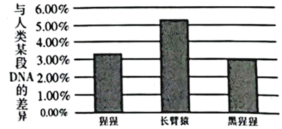 11. 科学家比较了几种现代类人猿与人类的某段DNA,得到下图所示结果,该结果说明( )