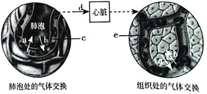 C.血液流经血管e组织细胞周围的毛细血管后,由含氧较多的动脉血变成含氧较少的静脉血,C正确。