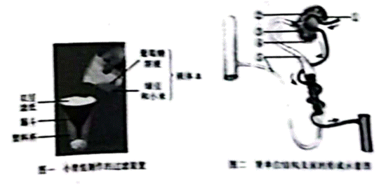 人体每时每刻都在产生废物,这些废物若不及时排出,就会影响健康。许多废物是通过肾脏形成的尿液排出的,每个肾脏包括大约100万个形成尿液的“过滤工厂”—肾单位(如图二)。那么,肾单位是如何形成尿液的呢?在老师的指导下,同学们制作了过滤装置来模拟肾单位部分结构的工作原理,图一是小青组的作品。请分析回答: