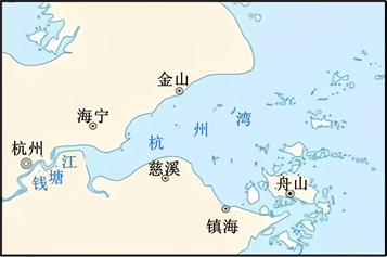 杭州湾至钱塘江口外宽内窄,口大肚小(如图),外口宽度达100千米;溯江而上,河道越来越窄。在海宁附近河道急剧收缩,宽度已不足3千米。涨潮时大量海水涌入狭窄的河道,水体涌积,后浪与前浪层层相叠,水位暴涨。
