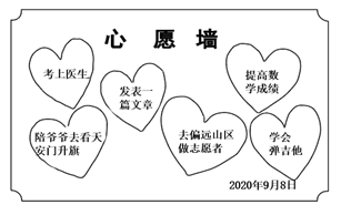 你的老师即将回到初一年级担任班主任,为了引导新同学明确努力方向,积极行动,计划在新班级布置心愿墙(图是2020级学生的心愿墙),并开设主题为“心愿·努力·坚持”的班会课。