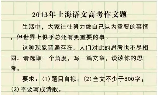 【导语】985考试网从教育部官微得知,2024年上海高考今天开考,今天上午进行的是语文科目考试。2024年上海高考作文题目已公布,自拟标题,不少于800字。
