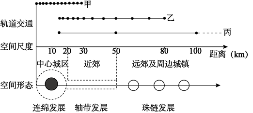 下图为我国某都市圈轨道交通与城市空间形态关系示意图。完成下面小题。