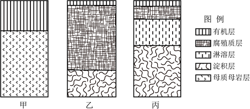 11. 下图为我国三大自然区3处采样点的土壤剖面(0-80厘米)示意图。完成问题。