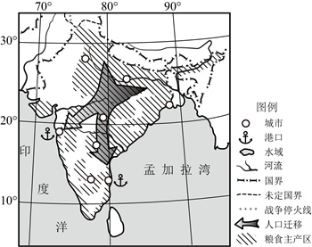 材料一:2021年,印度人口13.9亿,年龄结构较为年轻。该国城镇化水平34.5%,低于亚洲主要发展中国家,近年来国内人口出现跨区域迁移。该国粮食生产基本自给,是世界主要粮食出口国,但粮食出口常受政策限制。