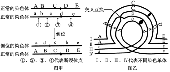 19. 某精原细胞同源染色体中的一条发生倒位,如图甲。减数分 裂过程中,由于染色体倒位,同源染色体联会时会形成倒位环,此时经常伴随同源染色体的交叉互换,如图乙。完成分 裂后,若配子中出现染色体片段缺失,染色体上增加某个相同片段,则不能存活,而出现倒位的配子能存活。下列叙述正确的是( )
