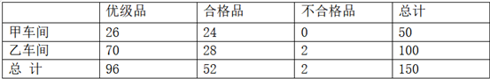 17.某工厂进行生产线智能化升级改造,升级改造后,从该工厂甲、乙两个车间的产品中随机抽取150件进行检验,数据如下: