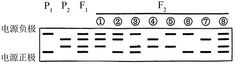B、电泳图中的F2的基因型依次为:AaBB、Aabb、AABb、aaBB、AABB、AAbb、aabb、AaBb,未出现的基因型为aaBb,其个体PCR产物电泳结果有3条带,B正确;