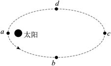 8. 图示虚线为某慧星绕日运行的椭圆形轨道,a、c为椭圆轨道长轴端点,b、d为椭圆轨道短轴端点。慧星沿图中箭头方向运行。