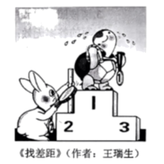 10.龟兔赛跑的寓言故事在中国广为人知,漫画(图)描绘了比赛结束后兔子在领奖台“找差距”的情境。兔子在此所犯的错误是( )