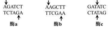 (2)质粒载体上有限制酶a、b、c的酶切位点,限制酶的切割位点如图所示。构建重组质粒时,与用酶a单酶切相比,用酶a和酶b双酶切的优点体现在________(答出两点即可);使用酶c单酶切构建重组质粒时宜选用的连接酶是________。