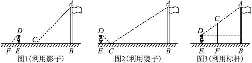 (2)如图2,小李站在操场上E点处,前面水平放置镜面C,并通过镜面观测到旗杆顶部A.小组同学测得小李的眼睛距地面高度