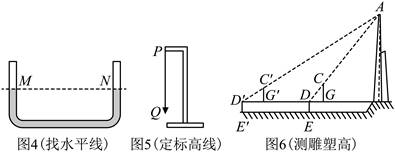 如图6,在江姐故里广场上E点处,同学们用注水管确定与雕塑底部B处于同一水平线的D,G两点,并标记观测视线