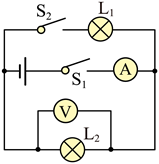 【详解】由图可知,L1和L2并联,开关S1为干路开关,S2为L1的支路开关,电流表测量干路电流,电压表测量电源电压。先闭合开关