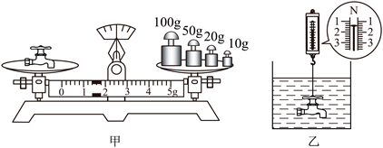 (2)小欣提出用弹簧测力计测量密度更方便。她先用弹簧测力计测出水龙头的重力;然后将水龙头浸没在水中静止,发现弹簧测力计的示数减小了2小格,这是因为水龙头受到竖直向________的浮力,此时弹簧测力计的示数如图乙所示为________N;小欣计算出水龙头的密度是________