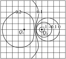 ,其中k为静电力常量,多个点电荷产生的电场中某点的电势,等于每个点电荷单独存在的该点的电势的代数和。电荷量分别为