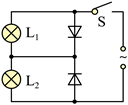 的2倍。假设两个二极管正向电阻为0、反向电阻无穷大。闭合开关S,灯泡
