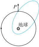 4. 太空碎片会对航天器带来危害。设空间站在地球附近沿逆时针方向做匀速圆周运动,如图中实线所示。为了避开碎片,空间站在P点向图中箭头所指径向方向极短时间喷射气体,使空间站获得一定的反冲速度,从而实现变轨。变轨后的轨道如图中虚线所示,其半长轴大于原轨道半径。则( )