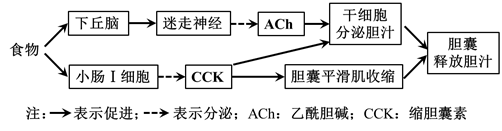 23. 由肝细胞合成分泌、胆囊储存释放的胆汁属于消化液,其分泌与释放的调节方式如图所示。