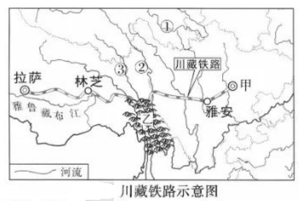 (4)川藏铁路东部起点的城市甲是_____________,修建过程中可能遭遇的地质灾害:_____________(至少两种)。
