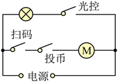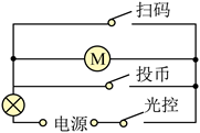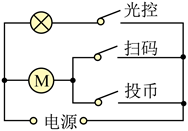 11. 党的二十大报告指出“必须坚持科技是第一生产力”。某学校为了培养学生的科学素养,开展了STEM科创教育,在此期间,科创小组自制了“冰淇淋自动售货机”。该作品可以通过扫码(该开关闭合)或投币(该开关闭合)完成自动出售服务;当光线较暗时,光控开关闭合,还可以提供照明。下列电路设计符合该要求的是( )