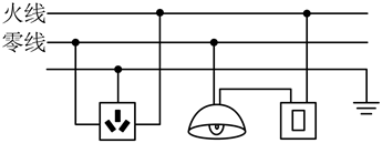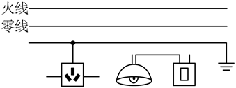 22. 如图所示,请用笔画线代替导线,将图中的插座、电灯和开关正确接入家庭电路中。