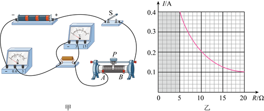 25. 小华和同学们进行了“探究电流与电阻的关系”实验。实验器材有:三节干电池(每节恒为1.5V)、电流表一只、电压表一只、滑动变阻器两个(分别标有“20Ω 2A”“40Ω 1A”字样)、定值电阻4个(5Ω、10Ω、15Ω、20Ω)、开关一个、导线若干。他们利用这些器材设计了如图甲所示的电路。