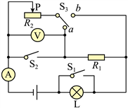 28. 如图所示,电源电压为6V恒定不变,灯泡L标有“2V 0.4W”的字样(忽略温度对灯丝电阻的影响),滑动变阻器