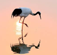 丹顶鹤在水中形成倒影