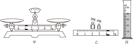 (2)用调好的天平称取适量的绿豆,如乙图所示,绿豆的质量为______g。将绿豆倒入空量筒,压实抹平,测得其体积为______