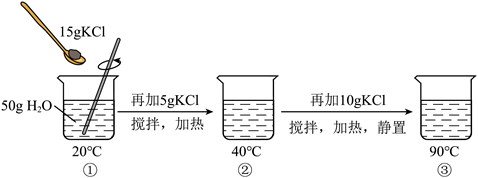 固体在水中的溶解情况,进行下图所示的操作(忽略水的蒸发)。下列说法错误的是