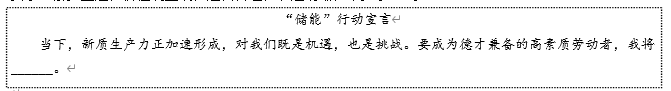 (3)作为新时代的劳动者,我们应为未来“储能”,去适应新质生产力发展的要求。请写下你的“储能”行动宣言。(4分)