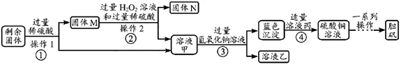 、CuO和C)为原料制备胆矾(硫酸铜晶体),操作流程如图: