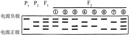 5. 某种二倍体植物的P1和P2植株杂交得F1,F1自交得F2。对个体的DNA进行PCR检测,产物的电泳结果如图所示,其中①~⑧为部分F2个体,上部2条带是一对等位基因的扩增产物,下部2条带是另一对等位基因的扩增产物,这2对等位基因位于非同源染色体上。下列叙述错误的是( )