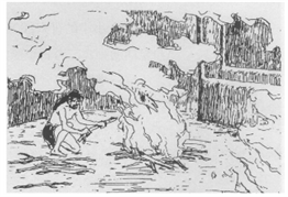 材料一 半坡人的房屋主要是半地穴式圆形房屋,图是半坡人建造过程中“烧烤地面,做防潮处理”的想象图。
