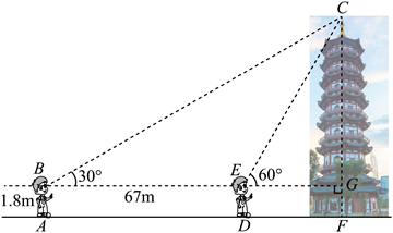 )班学生利用综合实践课测量怀远塔的高度.小江同学站在如图所示的怀远塔前的平地上