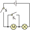 自动闭合,电动机工作,独轮车才开始运动,说明指示灯和电动机并联,可以独立工作,同时开关S处在干路,开关