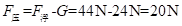;(2)44N;(3)20N,竖直向下;(4)33N