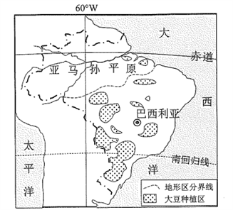 (1)请简要说明亚马孙平原大豆种植区很少的根本原因。(1分)