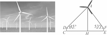 22. 习近平总书记于2021年指出,中国将力争2030年前实现碳达峰、2060年前实现碳中和.甘肃省风能资源丰富,风力发电发展迅速.某学习小组成员查阅资料得知,在风力发电机组中,“风电塔筒”非常重要,它的高度是一个重要的设计参数.于是小组成员开展了“测量风电塔筒高度”的实践活动.如图,已知一风电塔筒