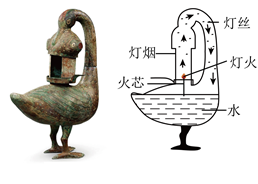 10. 如图是我国西汉青铜雁鱼灯及其示意图。灯油燃烧时,烟气通过鱼身和雁颈导入雁体内水中,减少对室内空气的污染。下列说法错误的是