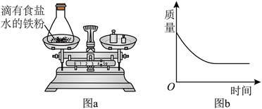 12. 某实验小组按图a装置验证质量守恒定律,一段时间后,发现锥形瓶内部分固体变为红棕色。实验过程中瓶内物质或元素质量变化与图b相符的是