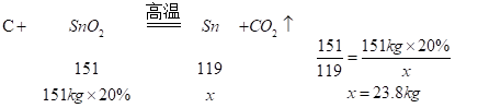 (2)现有151kg含SnO220%的锡砂,理论上可以炼出锡的质量是多少(写出计算过程)?