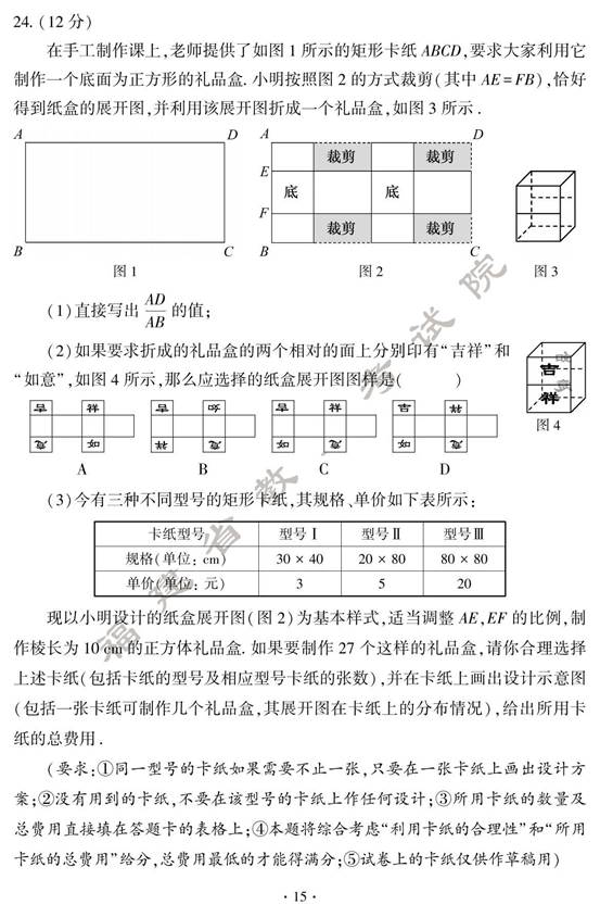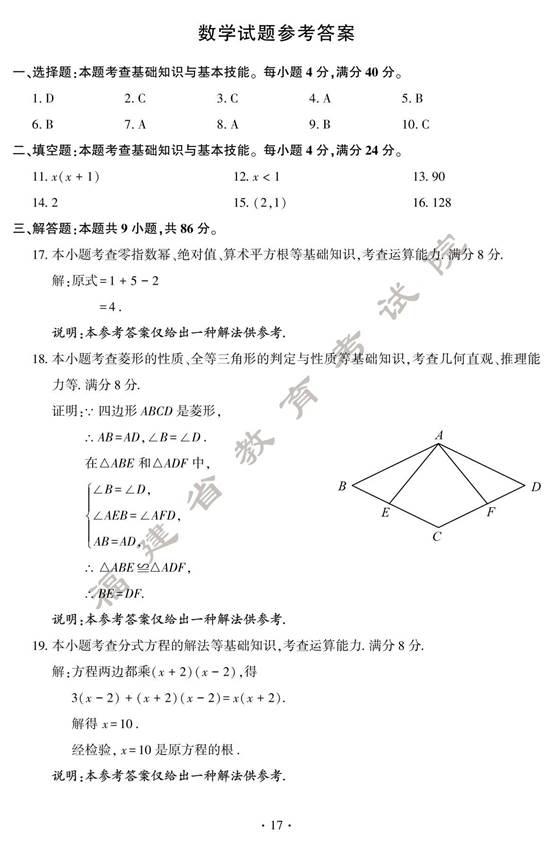 2024年福建中考数学真题及答案(图片版)