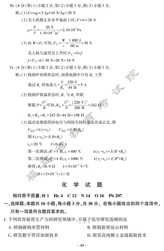 2024年福建中考物理真题及答案(图片版)