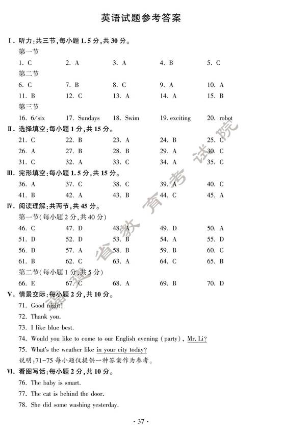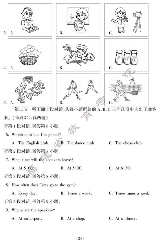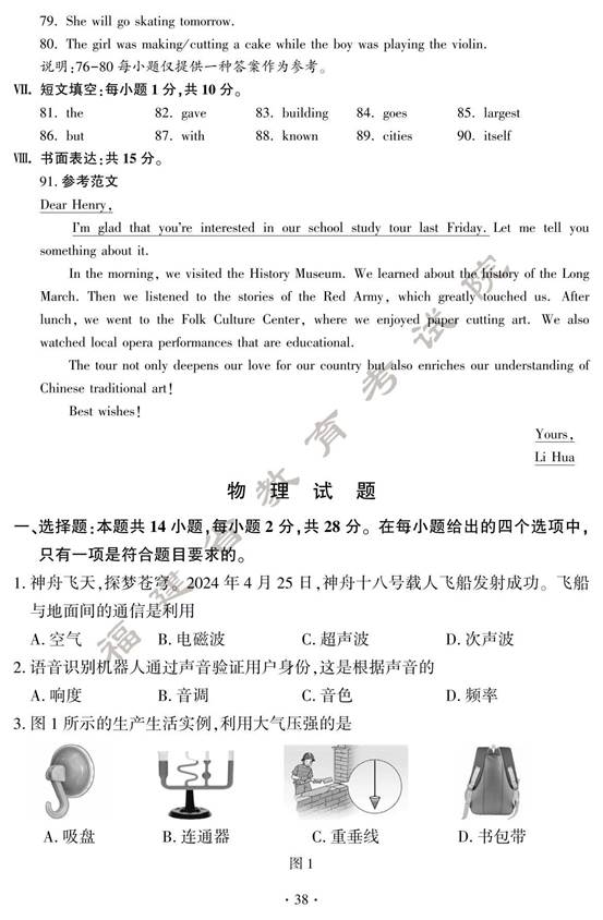 2024年福建中考英语真题及答案(图片版)